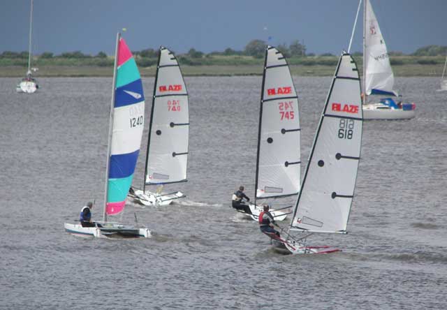 2007 Summer 1Back to Dinghy Homepage The race round the lighthouse on 1st July, the first race in the Summer Series, was abandoned because the weather threatened to blow up to hazardous proportions on the way to the lighthouse. The photo below, taken by John Rushton, shows the start of the abandoned race. Ivan and Andy are out of the picture.